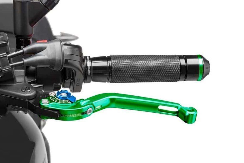FOLDABLE CLUTCH LEVER 16'C/GREEN SELECTOR C/BLUE. Necessary to buy specific lever adapter (use bike search).