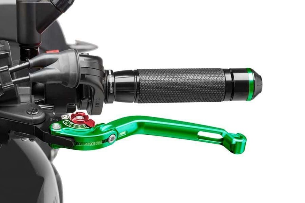 FOLDABLE CLUTCH LEVER 16'C/GREEN SELECTOR C/RED. Necessary to buy specific lever adapter (use bike search).