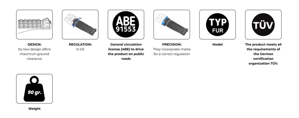 | UPOZORNĚNÍ: | Nutno dokoupit adaptéry stupaček dle vybraného motocyklu. |