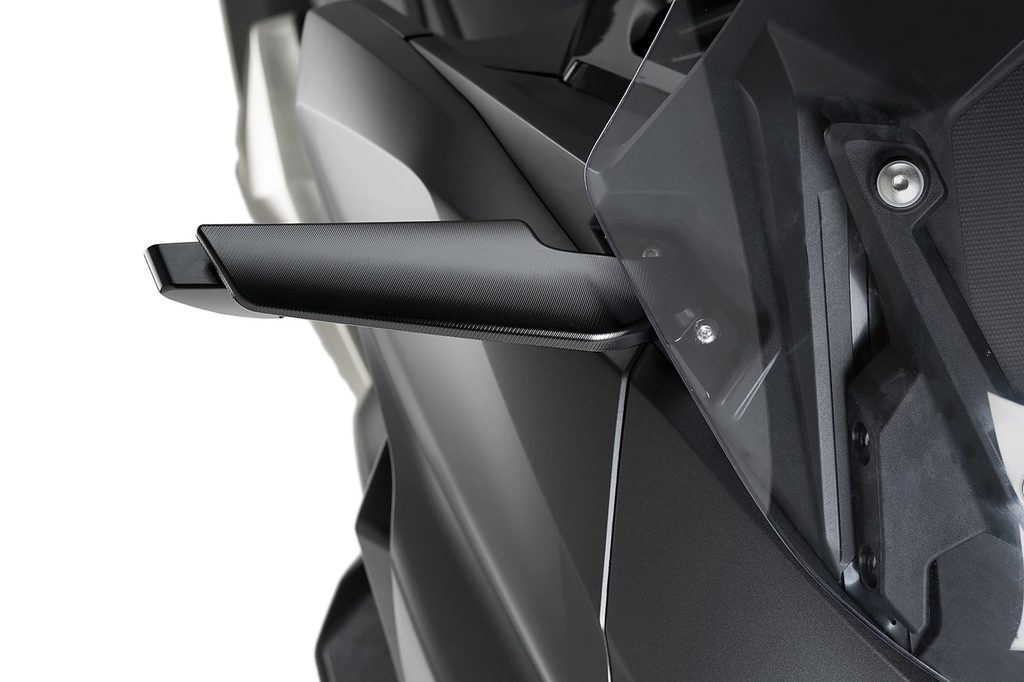 V rámci komplexního designového řešení se Puig podařilo spojit do jednoho produktu aerodynamické výhody bočních spoilerů Downforce s funkčností zpětných zrcátek a možností instalace blinkrů TAB. To vše v kompaktním dílu s atraktivní estetikou, ideálním pro přizpůsobení vzhledu nejvíce sportovních motocyklů.